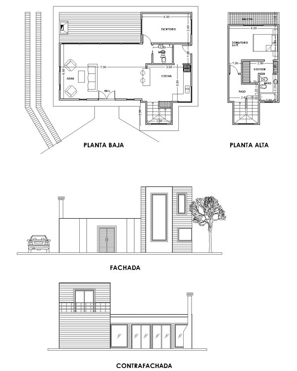 Vivienda familiar 97 m2 cubiertos – 17 m2 semicubiertos. Living–comedor, cocina americana, 1 escritorio, 1 dormitorio en suite, un toilette, 1 lavadero, galeria-deck.