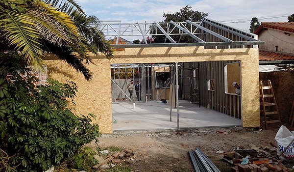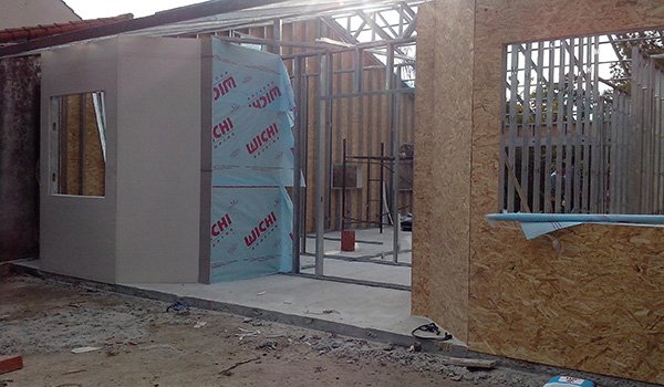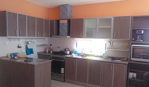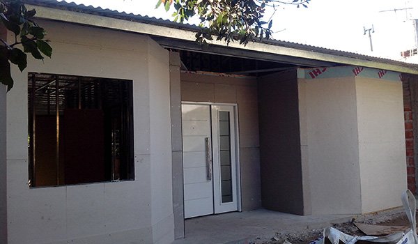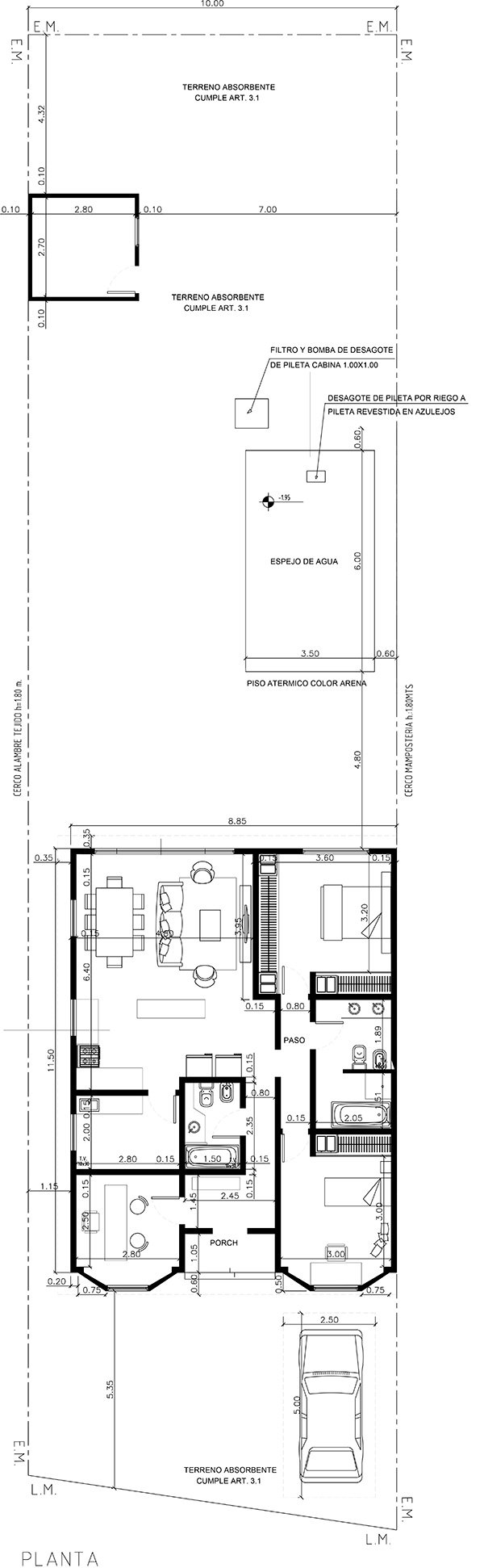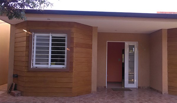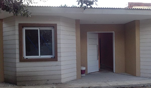 Vivienda familiar 100 m2 cubiertos – 4 m2 semicubiertos. Living–comedor, Cocina integrados, 3 dormitorios, 2 baños completos.