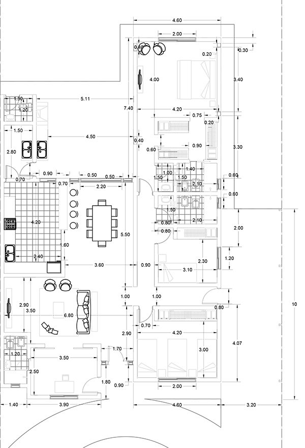 Vivienda familiar 165 m2 cubiertos – 20 m2 semicubiertos. Living–comedor, cocina integrados, 3 dormitorios, 2 baños completos, dormitorio principal en suite con vestidor, lavadero, galería con parrilla - toillette.